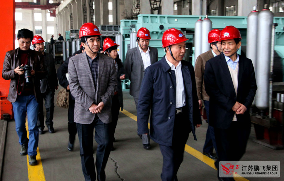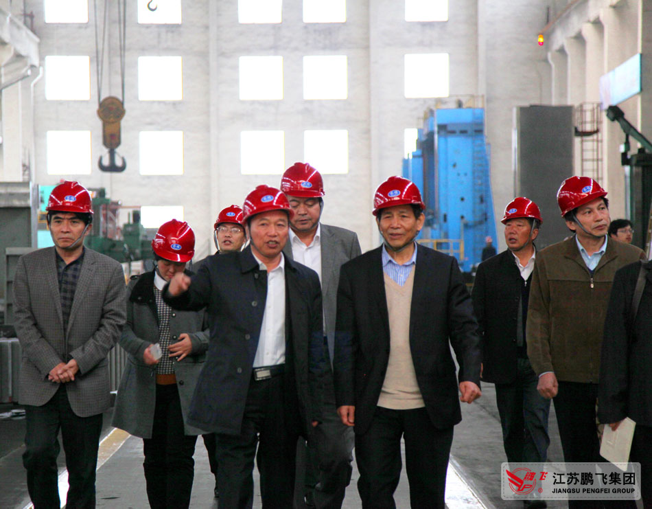 2014年11月25日,中國建材工業聯合會喬龍德會長到江蘇鵬飛集團現場考察,喬會長一行參觀了集團位于城北工業園的窯爐和節能粉磨設備生產現場、科技成果展廳,聽取了鵬飛集團董事長王家安關于落實全國建材系統工作會議精神和鵬飛集團轉型升級等方面的情況匯報。
