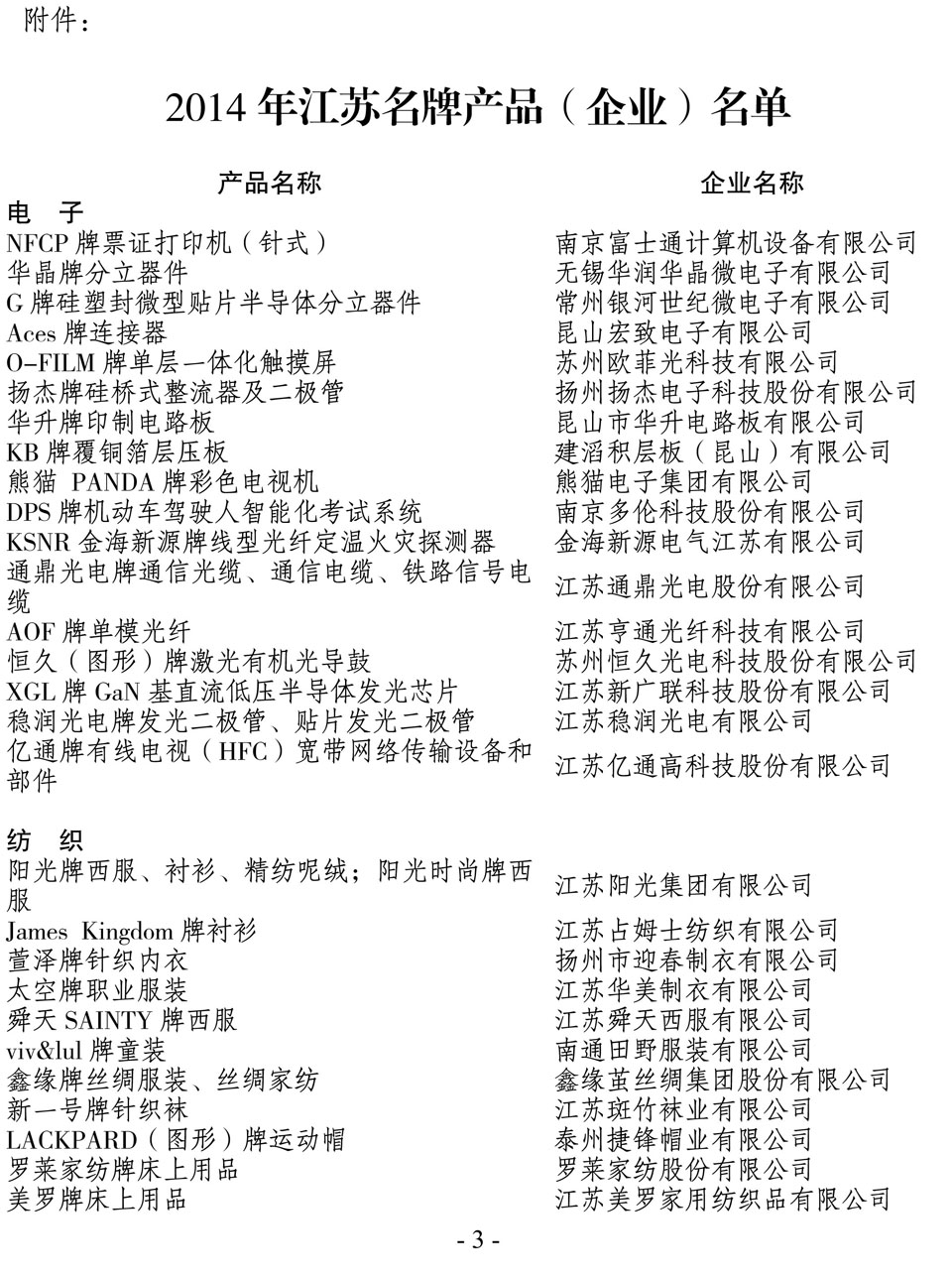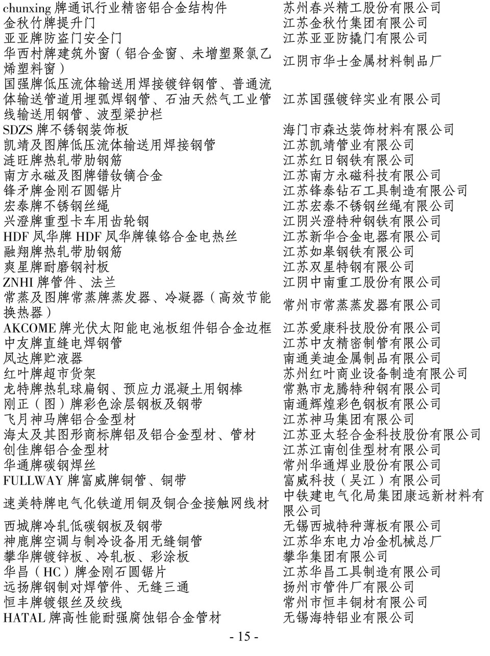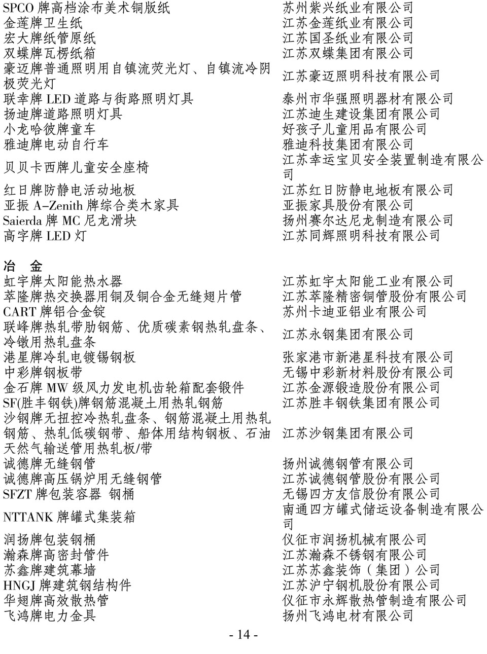 日前,江蘇省名牌戰略推進委員會公布了2014年江蘇省名牌產品名單,“