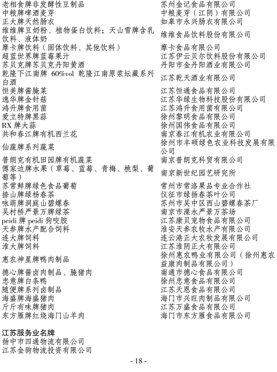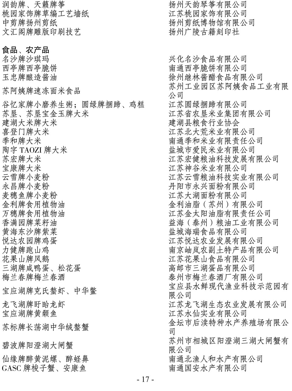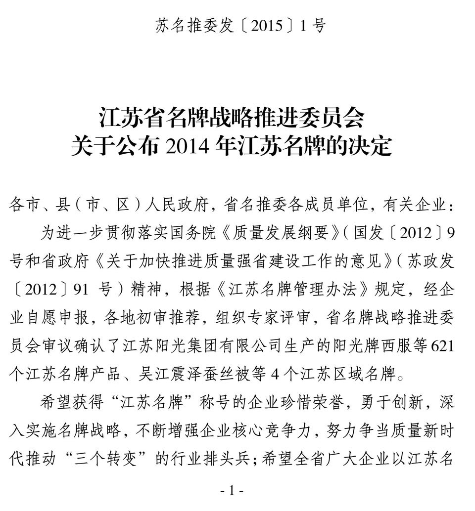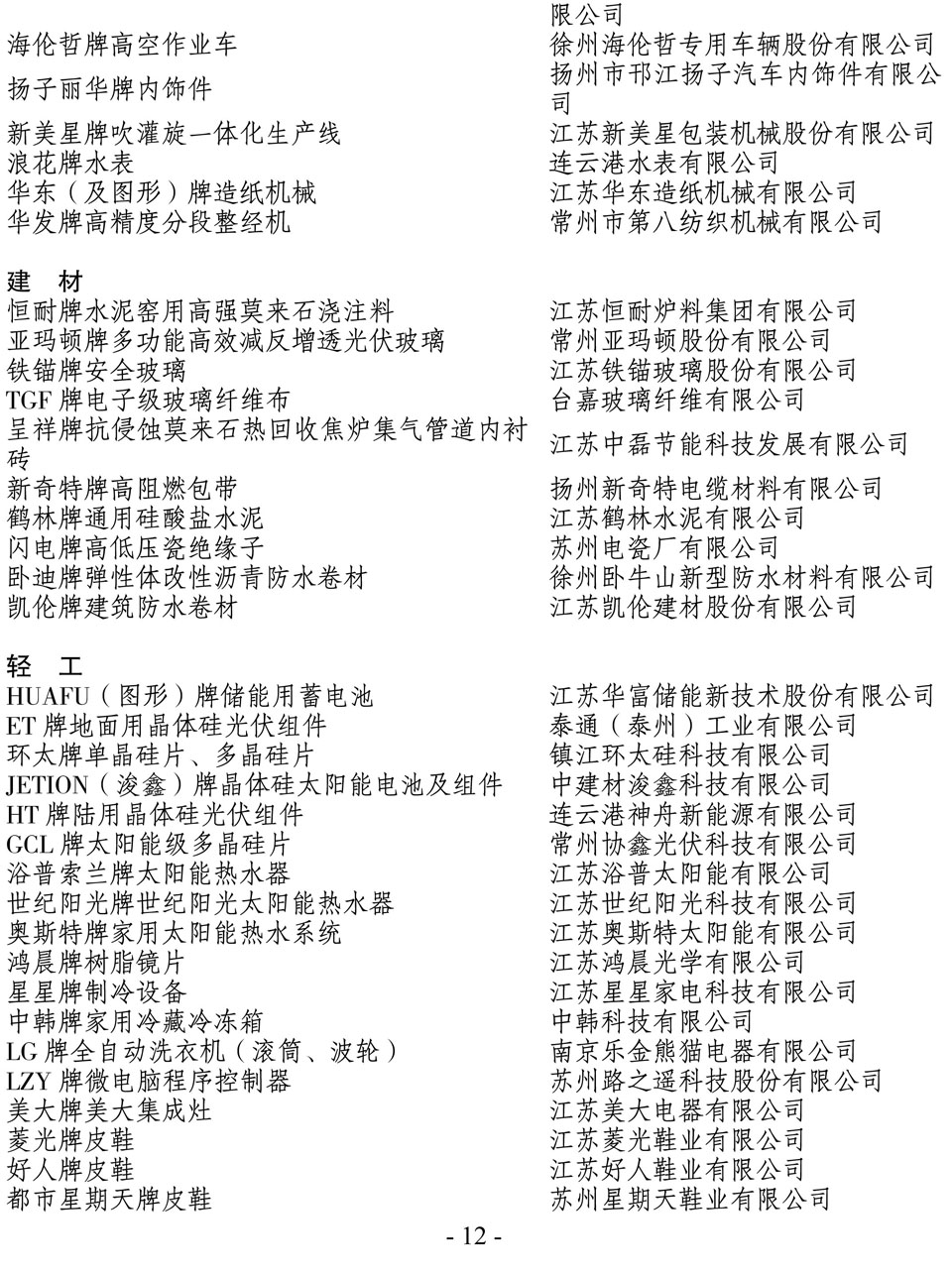 日前,江蘇省名牌戰略推進委員會公布了2014年江蘇省名牌產品名單,“