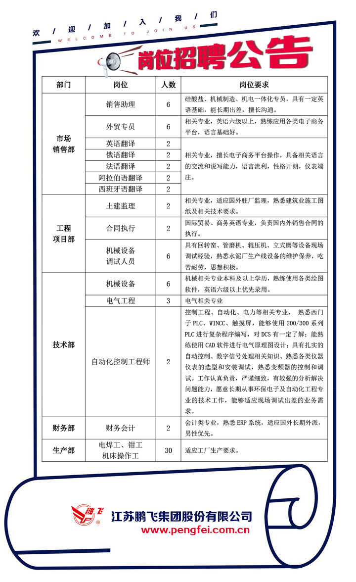個人簡歷標明“院校+姓名+崗位”發至:pf@pengfei.com.cn
