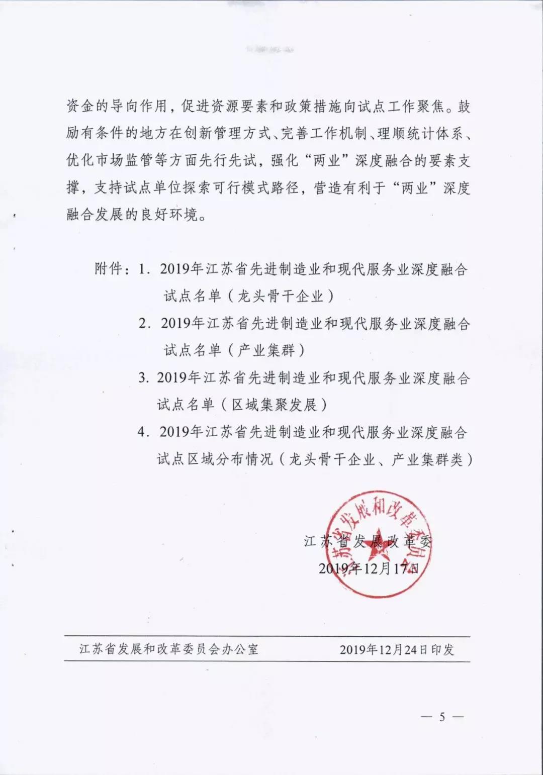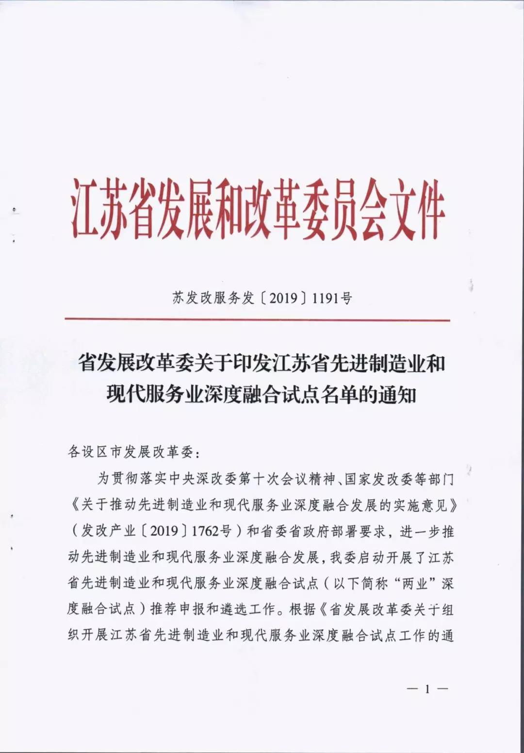 為貫徹落實中央深改委第十次會議精神、國家發改委等部門《關于推動先進制造業和現代服務業深度融合發展的實施意見》(發改產業〔2019〕1762號)和省委省政府部署要求,進一步推動先進制造業和現代服務業深度融合發展,我省啟動開展了江蘇省先進制造業和現代服務業深度融合試點推薦申報和遴選工作。根據《省發展改革委關于組織開展江蘇省先進制造業和現代服務業深度融合試點工作的通知》(蘇發改服務發〔2019〕851號)要求,在各地申報的基礎上研究確定123家龍頭骨干企業、21家產業集群和15家集聚區域作為首批“兩業”深度融合試點單位。我市江蘇鵬飛集團股份有限公司大型成套裝備總集成總承包融合試點、鑫緣繭絲綢集團股份有限公司繭絲綢全產業鏈產品生命周期管理融合試點、中國天楹股份有限公司智慧城市環境管理系統應用總集成總承包融合試點共三家企業入選試點名單。