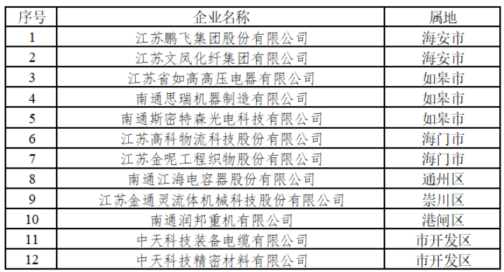 2019年度國(guó)家知識(shí)產(chǎn)權(quán)示范企業(yè)(南通12家)