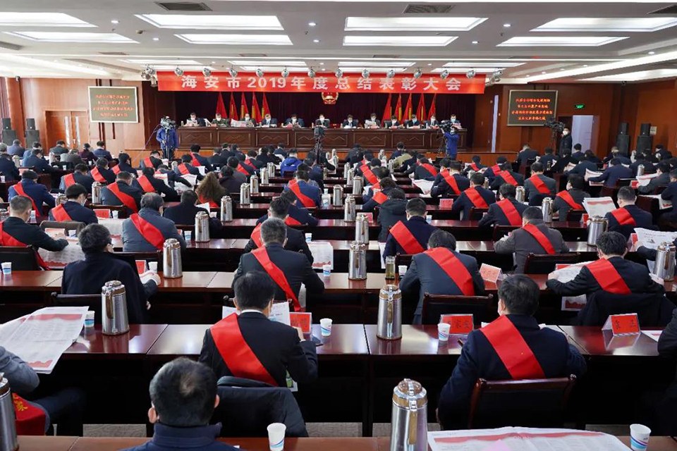 3月14日上午,海安市召開2019年度總結(jié)表彰大會,表彰全市各條戰(zhàn)線涌現(xiàn)的先進(jìn)單位和個(gè)人,由于受新型冠狀肺炎疫情的影響,會議實(shí)施一人一桌簡便召開。會議設(shè)主會場和分會場,由海安融媒體中心進(jìn)行現(xiàn)場直播。市四套班子全體負(fù)責(zé)人,各區(qū)鎮(zhèn)、各部門主要負(fù)責(zé)人、受表彰對象代表出席會議。獲獎單位分別上臺領(lǐng)獎,顧國標(biāo)書記做了重要講話。鵬飛集團(tuán)榮獲海安市委、市政府授予的杰出貢獻(xiàn)獎、工業(yè)百強(qiáng)企業(yè)、開放型經(jīng)濟(jì)先進(jìn)企業(yè)、海安市市長質(zhì)量獎、王家安董事長當(dāng)選六星級企業(yè)家。