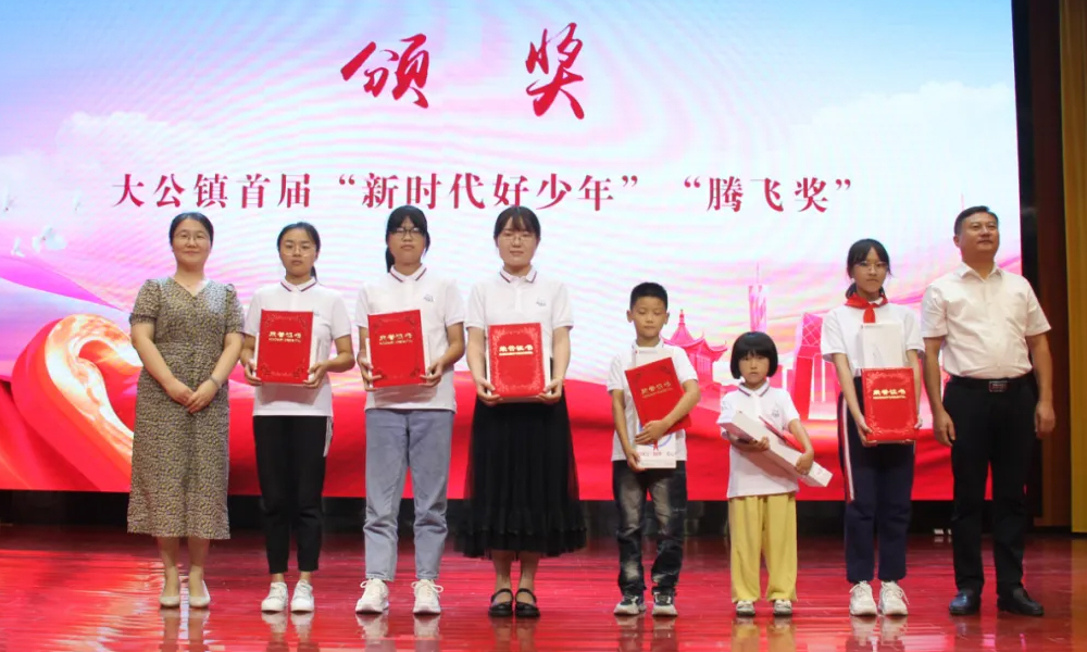 海安市委宣傳部未成年人思想道德建設科科長奚海寧、大公鎮人大主席王軍共同為大公鎮首屆“新時代好少年”“騰飛獎”獲得者頒獎,并送上禮品。