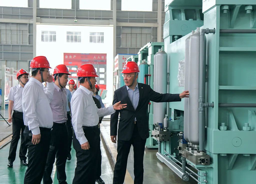 參觀中,王家安董事長向閻會長一行介紹了公司的發展歷程、現階段的裝備制造能力、近年來取得的重大成果,以及今后的主要目標和任務。
