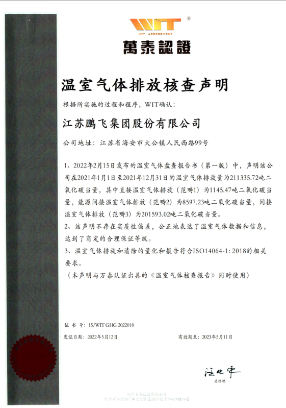 江蘇鵬飛集團股份有限公司一直以來堅持綠色采購,綠色生產,綠色物流的原則,積極響應并參與相關方(政府、客戶等)節能降排、碳排放報告活動。