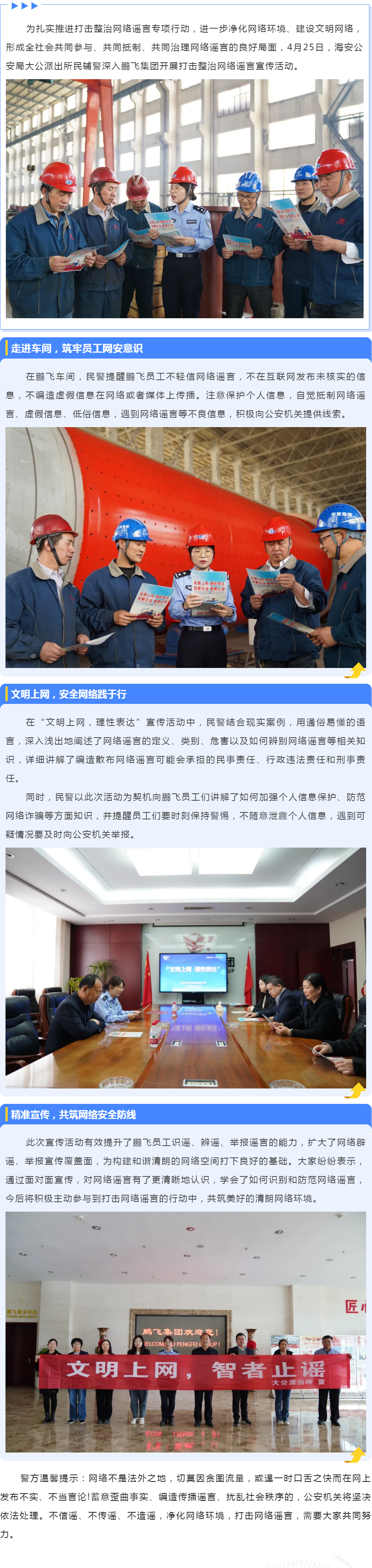 抵制網(wǎng)絡(luò)謠言、共建清朗家園宣傳活動(dòng)走進(jìn)鵬飛