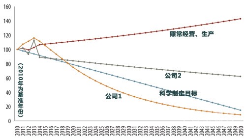 在低碳經濟中生存發展,企業需要設定一套科學的發展目標,目標需要反映出巴黎協定,以及公司根據巴黎協定為其運營所在國家及資源供應地區制定的二氧化碳減排計劃。這可以檢討公司現行的二氧化碳減排計劃是否仍然使用。
