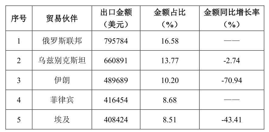 2  2021年水泥回轉窯主要出口國家或地區情況
