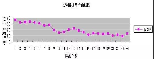 圖一 七號磨機(jī)的篩余曲線 1~8號為一倉,9~24號為二倉