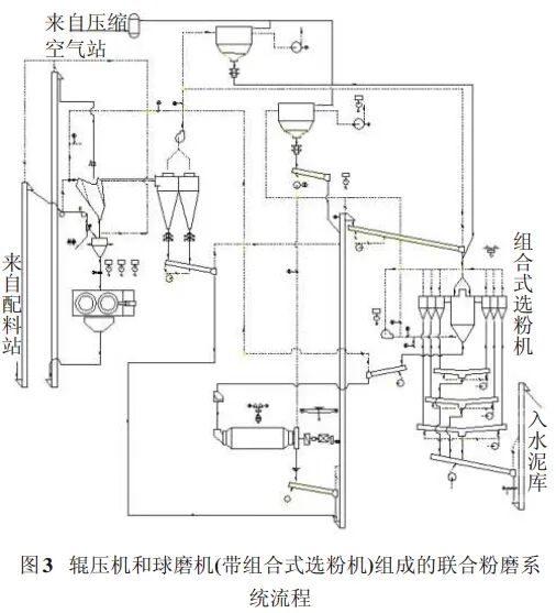 3 輥壓機和球磨機(帶組合式選粉機)組成的聯合粉磨系統