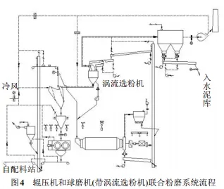 5 輥壓機和球磨機(帶渦流選粉機)組成的聯合粉磨系統