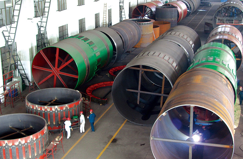 產(chǎn)品概述:回轉(zhuǎn)窯的結(jié)構(gòu)及工作原理 回轉(zhuǎn)窯的筒體由鋼板卷制而成,筒體內(nèi)鑲砌耐火襯,且與水平成規(guī)定的斜度,由三個輪帶支承在各檔支承裝置上,在入料端輪帶附近的跨內(nèi)筒體上用切向彈簧板固定一個大齒圈,其下有一個小齒輪與其嚙合。正常運轉(zhuǎn)時,由主傳動電動機經(jīng)主減速機向該開式齒輪裝置傳遞動力,驅(qū)動回轉(zhuǎn)窯。 物料從窯尾(筒體的高端)進(jìn)入窯內(nèi)煅燒。由于筒體的傾斜和緩慢的回轉(zhuǎn)作用,物料既沿圓周方向翻滾又...